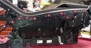 Remove the screws (x2) that attach the center console decor rear bright strip to the