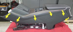 Release the clips (x3) that attach the center console rear cup holder assembly to the