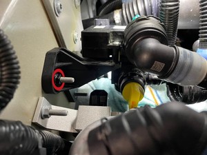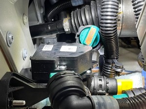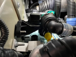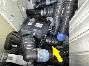 Secure battery radiator inlet hose onto three way valve