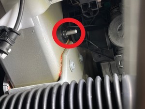 Remove bolts securing front aero shield and remove from vehicle