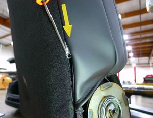 RH 2nd row seat back upholstery to the seat, and then fold the upholstery down.