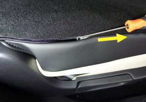 NoteThe ends of the zippers are tucked underneath upholstery.TIpUse a pick to aid in moving the zipper.