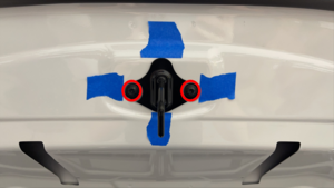 Position the hood striker onto the hood, and then install the bolts (x2) that attach