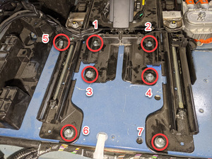 front of the LH 2nd row seat tracks to the vehicle.33 Nm (24.3 lbs-ft)NoteFollow the torque sequence shown in the image.TIpUse of the following tool(s) is recommended: