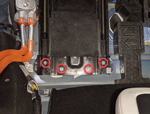 Tighten the bolts (x4) that attach the rear of the LH 2nd row seat tracks to