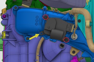 Position the RH footwell duct actuator to the HVAC assembly, and then install the