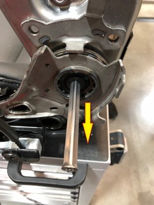 NoteThe flared end that engages the outboard side of the seat back frame will need to be held. Place a 12mm socket over the clip and set it in place with the dead blow hammer.
