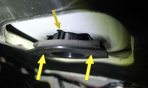 Install the tabs (x2) that attach the HVAC drain funnel to the bulkhead.