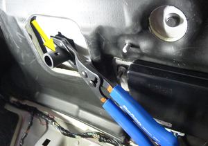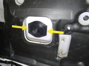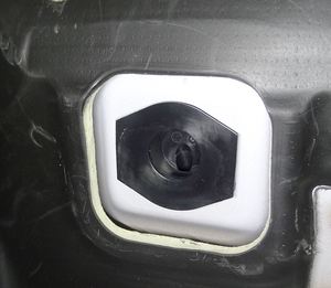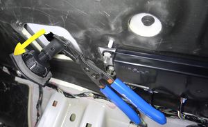 Pull the HVAC drain funnel and drain hose into the cabin, and then install hose clamp pliers on the drain hose to hold in position.
