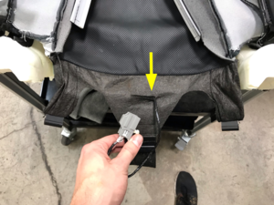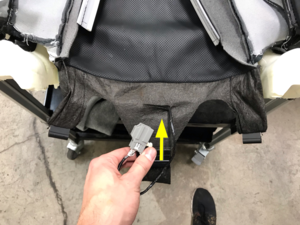 Position the LH monopost under belly trim on the seat assembly, and then connect the trim connector.
