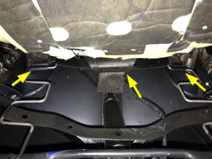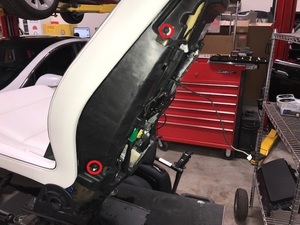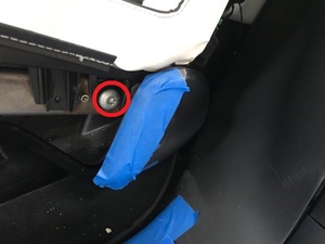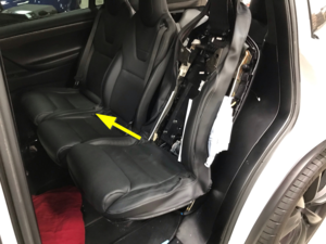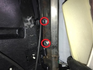 Remove the bolts (x2) that attach the 2nd row LH monopost under belly trim to the seat.