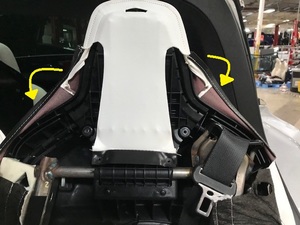 Remove the screws (x2) that attach the seat back assembly to the seat assembly.