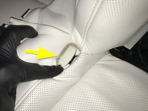 - Remove the LH 2nd row seatbelt escutcheon. See GUID-EA0580A5-9631-4FE4-99BD-FB41E40532A4.html.