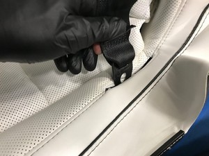 Release the Velcro straps (x2) that attach the LH 2nd row seat cushion and backrest bolster trim to the seat back frame.