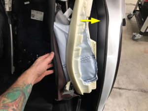 Install the studs (x2) that attach the side air bag to the upholstery air bag pouch.