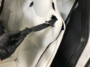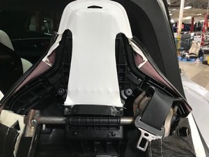 NotePosition the seat cushion on the seat, and then place the trim headrest upholstery on the seat assembly headrest. Ensure the seatbelt buckle inserts into the seat cushion.