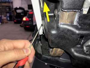 - Remove the LH 2nd row seatbelt anchor escutcheon. See GUID-90ACE5F2-7A3B-4E86-88B4-DE24F30BB04F.html.