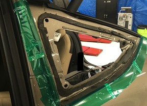 NoteUse masking tape to mark current position to aid during the re-installation of the rear quarter glass.