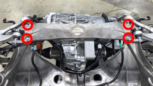 the rear subframe, and then install the bolts (x4) that attach the stiffener to the