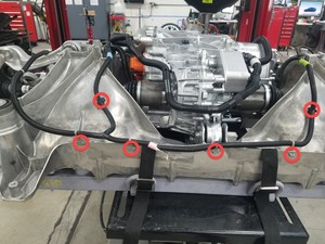 - Move the vehicle to a 2 post lift. See Raise Vehicle - 2 Post Lift.