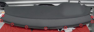 Install the screws (x9) that attach the dash speaker mesh to the IP