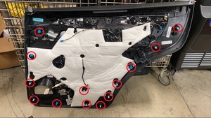Note5x bolts, T25, 2.5 Nm, 4.0 Nm, 1x harness clip, Fastener count may vary