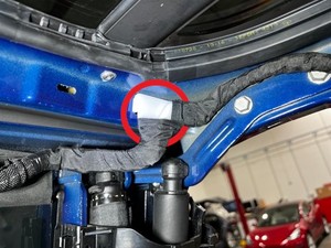 Note17x clips, Align strut cover first, 1x connector may be present on early production vehicles