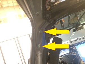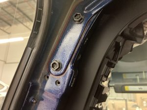 Note4x bolts, 13mm, 24 Nm, Use a rubber hammer to position upper falcon door to previous marked location, Use caution as the falcon door hinges are spring loaded and will want to retract to falcon door open position, Recommend assistance
