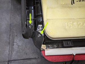 Release the J-hooks (x2) that attach the 3rd row cushion cover to the cup