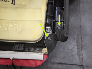 Install the J-hooks (x2) that attach the 3rd row cushion cover to both sides of the