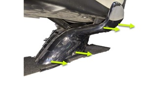 With assistance, release the clips (x5) that attach the 2nd row mid floor board to