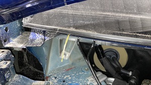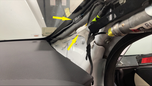 Secure the line to the starter tool and push the tool through the urethane at the lower RH side of the windshield.
