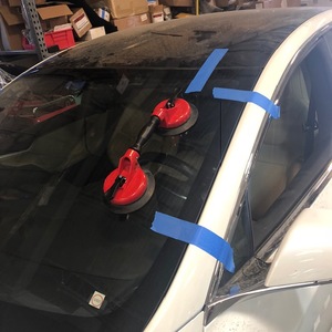 Apply tape to secure the windshield to body while urethane cures.