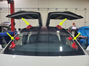 Secure 2 suction cups (1080599-00-A) onto each side of the windshield.
