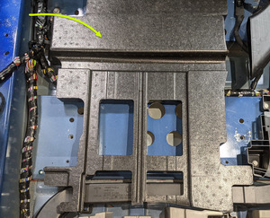 Position the front cabin carpet on the body, and then install the push clips (x2) that attach the carpet to the body.