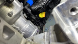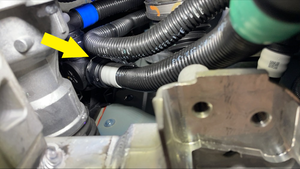 Install the hose clip that attaches the HV battery to 3 way valve hose on the valve.