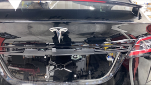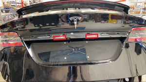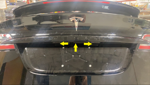 NoteStart at the center of the liftgate applique and work outwards.NoteMake sure the clips are fully secured before adhering the ends of the applique.NoteUse a seam roller to adhere the applique.