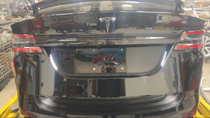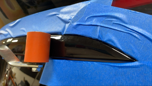 fully secured, apply masking tape to both ends of the liftgate applique, and then secure
