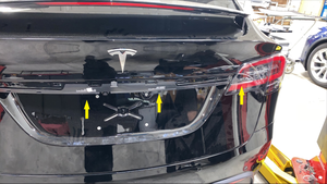 molding hold down fixtures to both ends of the liftgate applique. Allow the applique to