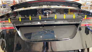 alignment, position the liftgate applique onto the liftgate, secure the clips (x6) that