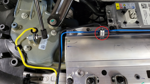 Note10mm. Torque 8 Nm. 1x datum.NoteRotate the reservoir with bracket onto LH FST cap.