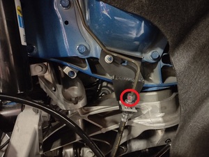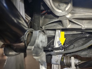 Install the bolt that attaches the LH rear flexible brake hose to the LH rear lower