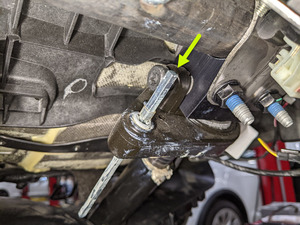 NoteWork the nut from each side to remove it. Apply pressure to the top of strut rod to move it downward.NoteDiscard the metal push nut after removal.