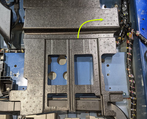 Position the front cabin carpet on the body, and then install the push clips (x2) that attach the carpet to the body.