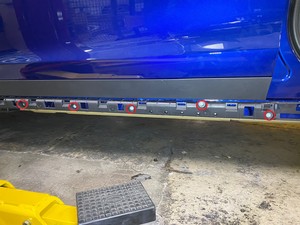 Position the LH rocker panel onto the body, and then secure the clips (x14) that