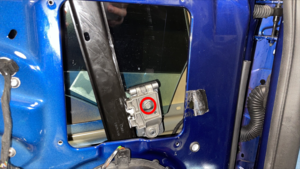 attach the LH front window glass to the regulator, carefully slide the window forward