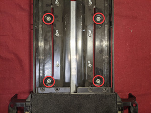 Install new bolts (x4) and washers that attach the magic carpet to the LH 2nd row