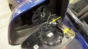 connectors (x3) from the rear of the LH door mirror glass, and then remove the glass