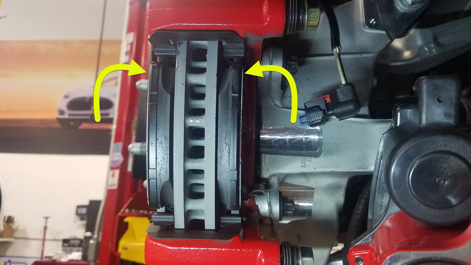 NotePrevent the brake pads from falling out of the caliper.