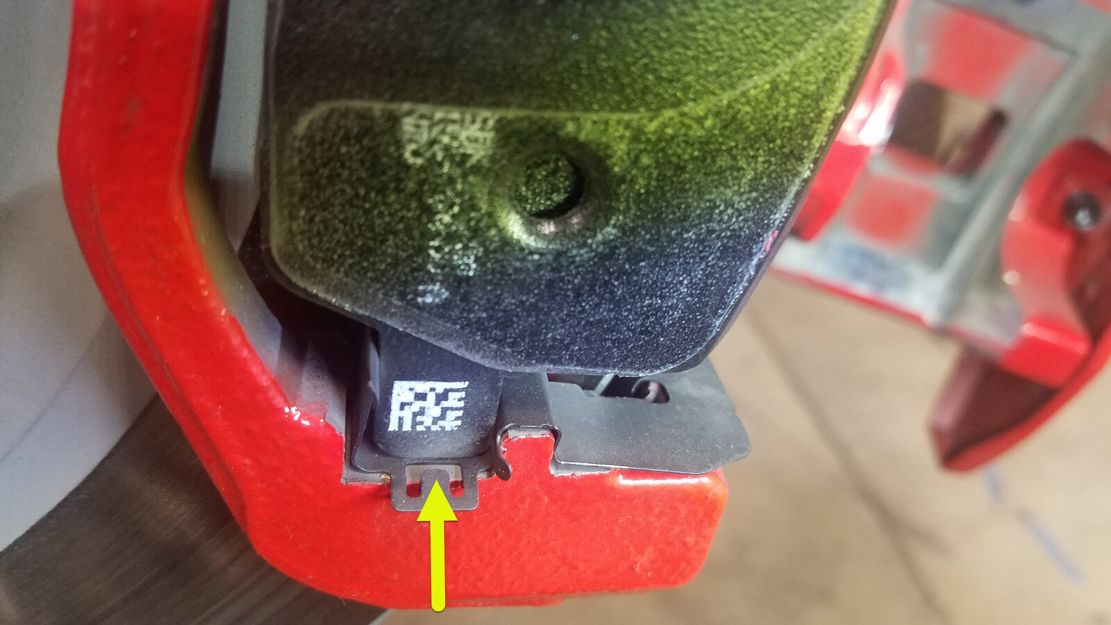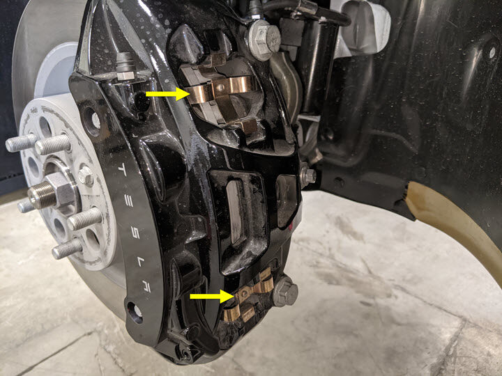 Apply a thin layer of Tesla-approved brake caliper lubricant to the brake pad contact